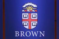 FILE - The logo for Brown University is displayed at the school's campus in Providence, R.I., on Wednesday, April 25, 2018. (AP Photo/Steven Senne, File)