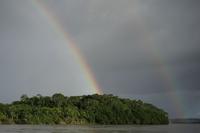 Rainbows cross the Putumayo River on the outskirts of Puerto Asis, Colombia, Wednesday, Nov. 26, 2025. (AP Photo/Ivan Valencia)