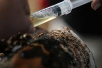 Community members open an apiary on the outskirts of Puerto Asis, Colombia, Wednesday, Nov. 26, 2025. (AP Photo/Ivan Valencia)