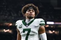 FILE - New York Jets quarterback Justin Fields warms up before an NFL football game against the New Orleans Saints on Dec. 21, 2025, in New Orleans. (AP Photo/Ella Hall, File)