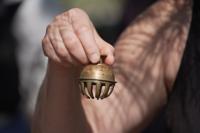Forest therapy guide Shawn Ramsey rings a tiny brass bell during a "forest bathing" session at the J.C. Raulston Arboretum in Raleigh, N.C., on Sunday, March 22, 2026. (AP Photo/Allen G. Breed)