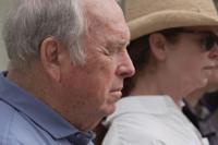 Alan Mintz smells a crushed conifer twig during a "forest bathing" session at the J.C. Raulston Arboretum in Raleigh, N.C., on Sunday, March 22, 2026. (AP Photo/Allen G. Breed)