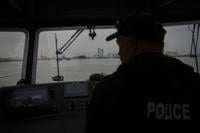 A Port of Corpus Christi police officer guides a boat through the port Thursday, Nov. 16, 2023, in Corpus Christi, Texas. (Jon Shapley/Houston Chronicle via AP)