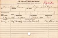 This photo provided by the Carlisle Indian School Digital Resource Center shows the student card of Elsie Davis, a member of the Cheyenne Nation, who entered the Carlisle Indian Industrial School on May 21, 1890, and died on July 16, 1893. (Carlisle Indian School Digital Resource Center via AP)