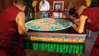 Construction of the mandala on day four, April 15. Location: Salisbury University’s Great Hall. (Photo credit: Amber Eversburg)