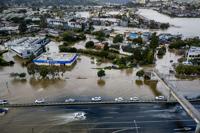 Streets are flooded by the "King Tides", occurring when the sun, moon and Earth align, causing a stronger gravitational pull Saturday, Jan. 3, 2026, near Corte Madera in Marin County, Calif. (AP Photo/Ethan Swope)