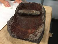 A stone on which chocolate was made in Colonial times.