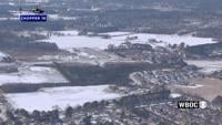 WBOC's Kyle Orens reports from Chopper 16, flying over snowy fields, snowy roads, snowy golf courses, and a snowy airstrip.