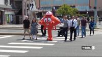 Folks on the Boardwalk got to meet Cheswick the Crab. For 10 years, she has been sharing her message to "Walk Smart, Bike Smart, and Drive Sma…