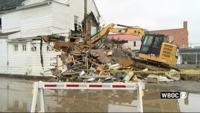 A planned demolition of a condemned building in downtown Cambridge came to a sudden halt Tuesday morning when part of the structure unexpected…