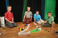 Sean competes against students from Faith Baptist School to see who can build the best domino art and knock it down successfully.