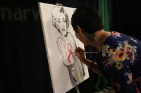 Artist Miriam Moran with a Marilyn Monroe inspired painting