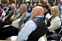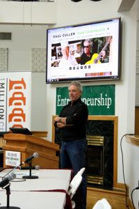 After Jenna’s presentation, repeat guest, Paul Cullen, explained how he created a business combining his love for food and his knowledge of music. After explaining his food and music business, Cullen answered questions and played guitar for the crowd.