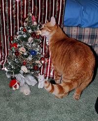 Rusty moving a mouse on his Chrismouse tree, from Weather Watcher Jan in Onley, Virginia.