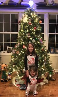 Kaitlyn and Michaela in front of the Christmas tree in the Blackburn family home in Frankford, Delaware.