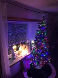 The Pintos’ family tree and cat in Hebron, Md.