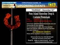 Chincoteage Island, Va. will hold its New Year’s Eve – Pony Island Horseshoe Drop & Costume Promenade at 10:30 p.m. The celebration will take place at Robert Reed Park. This year’s theme is “All American Cowboys.”