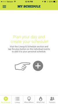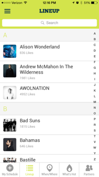 After Firefly releases the schedule, this part of the app will be pretty neat. You can click the ‘+’ in the center of the screen and plan each day of the festival and create a schedule. If you want to see Walk the Moon, Glass Animals, and Knox Hamilton on Friday, you can plan out all three so that you know which stage you have to be at and what time they are playing. This is a great feature because you wouldn’t want to miss your favorite bands. The lineup shows you the bands listed in ABC order, which makes them easier to look up and find more information about each band. The when/where feature does not show anything yet because the schedule is not out yet. However, this feature will allow you to see when and where each band is playing so that you can create a schedule that works for you and your friends. You can also view what’s hot and what bands are being scheduled the most.