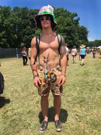 Sam Krizner, of Virginia, at his first Firefly with a mad hatter hat, huge pendant necklace, and patterned shorts, on Friday, June 17, 2016. He was looking forward to seeing Tame Impala.