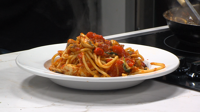 We're in the Kitchen Concepts Kitchen with Chef Joe Bellia for Mamma Mia Monday with a chicken and eggplant bucatini dish.