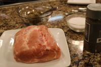 2. Remove pork loin from brine solution and rinse thoroughly in cold water. Pat dry with paper towels. Place meat on a sheet pan.