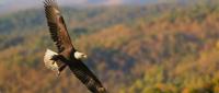 A bald eagle flying at Blackwater National Wildlife Refuge. (Photo credit: Larry Hitchens)