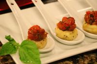 5. Top each slice of toasted baguette with Mediterranean bruschetta.