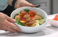Chef Thomas O'Neil from Suicide Bridge Restaurant is in the Kitchen Concepts Kitchen making a Spring Seared Scallop Salad.