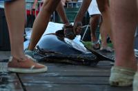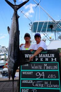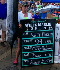 Cheryl McLeskey made her way to the docks on the boat Backlash with the 94 pound Billfish on board. This fish could win McLeskey a whopping $1.3 million. The winning white marlin last year was a mere 78 pounds.
