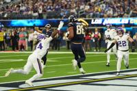 The Chargers answered early in the fourth on Herbert's 6-yard pass over the middle to Tre' Harris. The Vikings were penalized for too may players on the field and the Chargers overcame a false-start penalty by Foster Sarell.