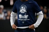 Dallas players wore blue T-shirts with Kneeland's name, the years of his life — 2001-2025 — and the team's star logo beneath an image of his face. A decal of his number, 94, was on the back of their helmets and will remain there for the rest of the season.