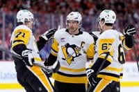The 38-year-old Crosby, a career-long foil for the Flyers, not only scored his first goal of the series, but he also set a savvy screen in the third period on defenseman Travis Sanheim that allowed Letang to have a clean look when he ripped his first goal of the series past Dan Vladar for a 3-1 lead.