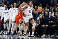 Syracuse (24-9) was down 22-8 with three minutes left in the first half. The Orange, playing without injured starting point guard Dominique Darius, struggled to handle UConn's defensive pressure. Syracuse went more than 10 minutes without a field goal as the 31-0 run gave the Huskies the 53-8 lead.