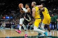 MILWAUKEE (AP) — Giannis Antetokounmpo left Milwaukee’s game against the Indiana Pacers on Sunday after landing awkwardly as he completed a dunk late in the third quarter of the Bucks’ 134-123 victory.