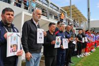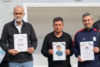 The Iran players were joined by coach Amir Ghalenoei, Iran Football Federation vice president Mehdi Mohammad Nabi and staff members, holding the photographs while singing the national anthem.