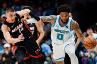Ball finished with 30 points and 10 assists and Bridges had 28 points and nine rebounds as the Hornets won their first postseason home game in a decade. Coby White had 19 points, including a turnaround 3 with 10.8 second left in regulation to send the game to OT.