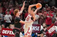 Sandfort hit back-to-back 3-pointers 26 seconds apart to put the Cornhuskers up 18-15. He went on to score 17 points in the first half as Nebraska led 41-25 at the break.