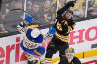 BOSTON (AP) — Bowen Byram scored a minute after Boston missed a penalty shot, and Alex Tuch broke a third-period tie to help Buffalo come from behind and beat the Bruins 3-1 on Thursday night to take a 2-1 lead in the first-round playoff series.
